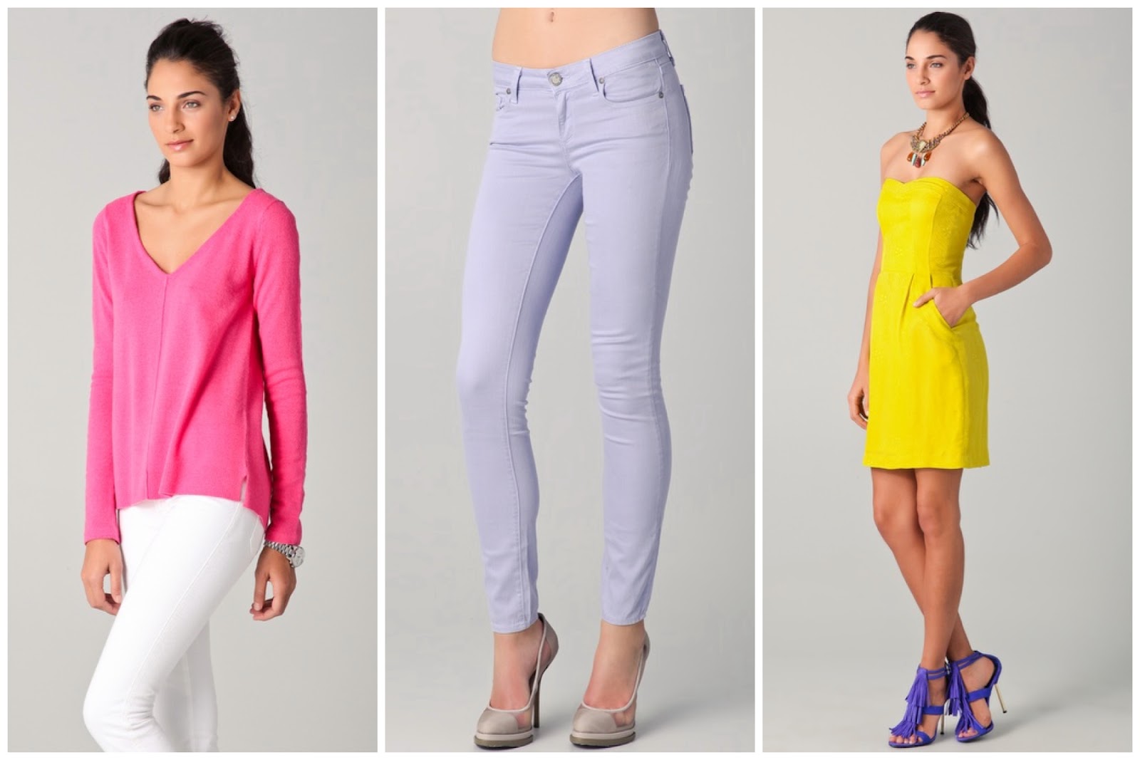 For spring I am loving neon and florals, but I also can’t live without some of my neutral pieces – black leather shorts and a classic pleated skirt. The shirts (striped, gingham, chambray, and silk shirts) shown here are some of my staples that I pretty much wear all year round. I am currently